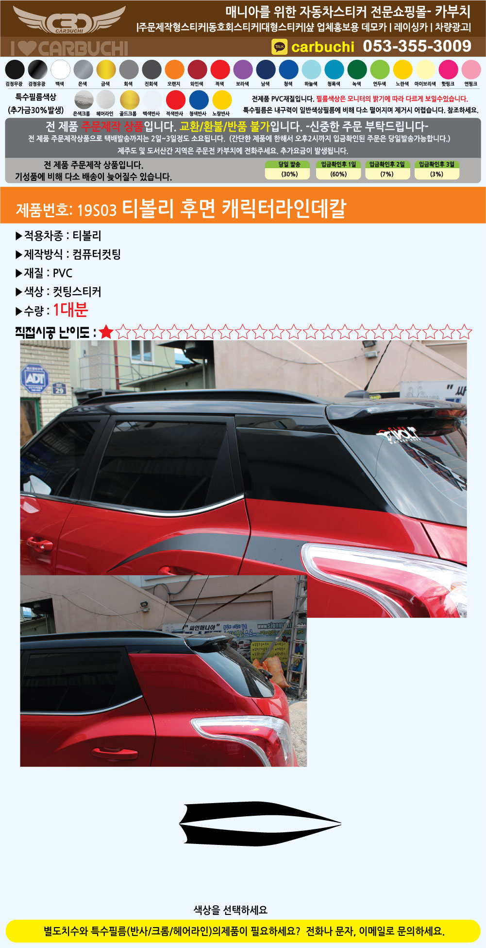 19S03 티볼리 후면 캐릭터라인데칼 (고정치수)