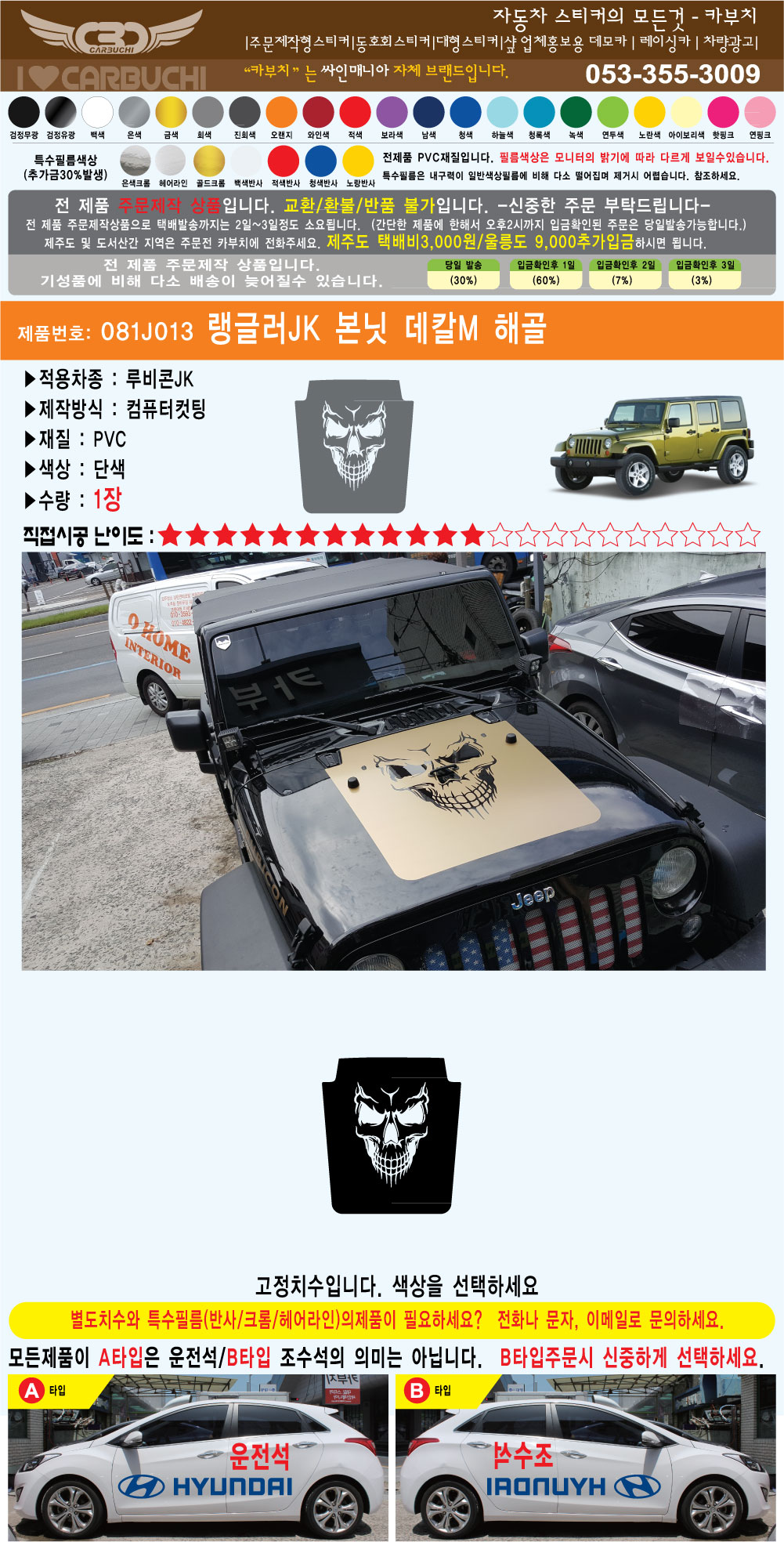 081J013 랭글러Jk용 후드데칼M