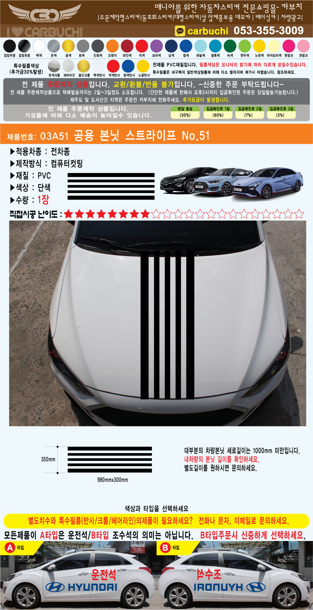 03A51 공용 본닛 스트라이프 No.51